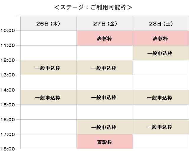 ※時間は下の「ステージご利用可能枠」表を参照下さい