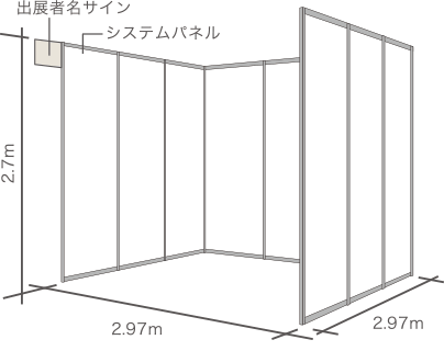 - 1小間サイズ:2.97×2.97×2.7m(壁心)