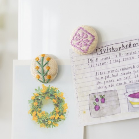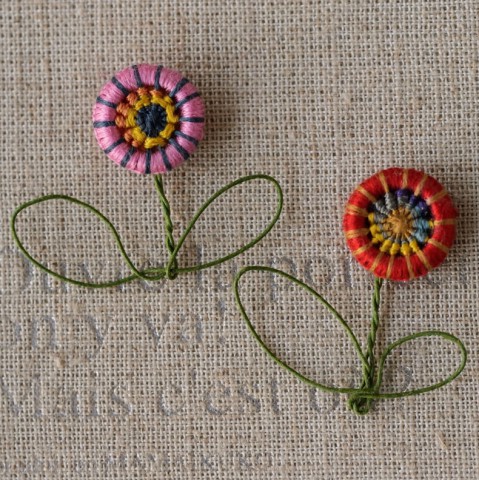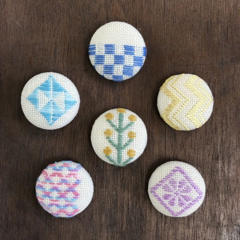 糸巻きボタンで作るお花ブローチ
