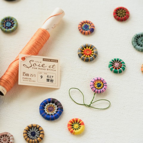 シルク糸『Soie et(ソワエ)』を使って糸巻ボタンを作ります。