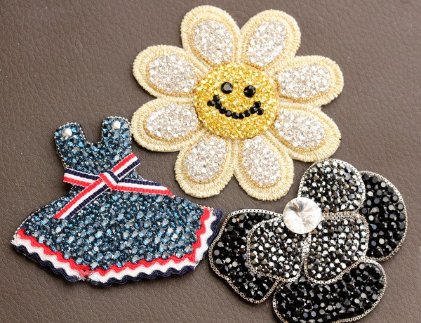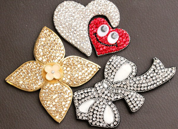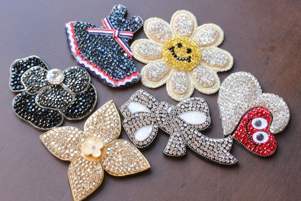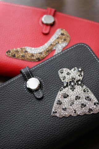 オリジナルシートを使ったワッペンは初めての方でも簡単に革(合皮・布)などに付けられるグルー(粘土)とスワロフスキーを使った立体ワッペンをお作り頂けます。