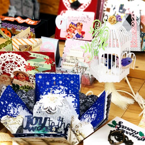 ダイカットしたペーパーを使って、今流行りのロゼットを作りましょう!ペーパーの色合わせや、いろいろなダイカットモチーフを組み合わせてオリジナルロゼットに!!