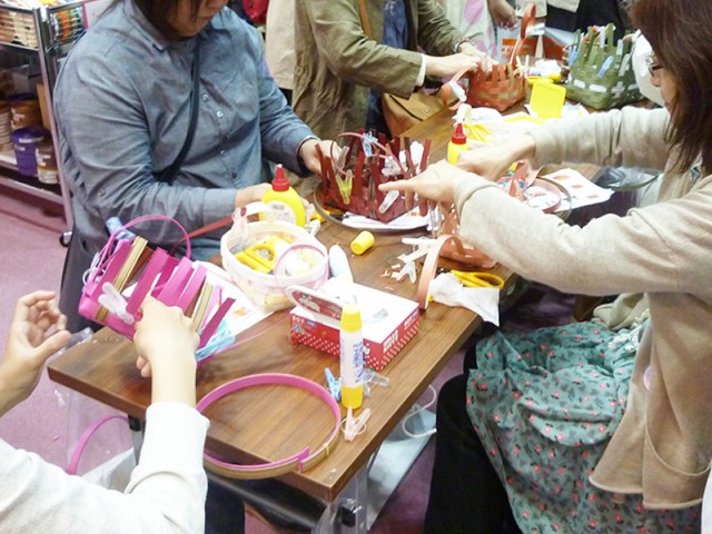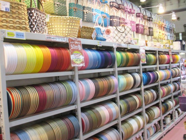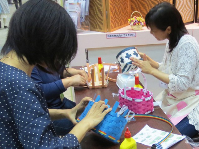 キット(大→1,000円・小→700円・持ち手なし→500円)からお好きな色を選んでいただき、かごを制作します。底組をしてあるキットなので、初めての方でも15分〜30分程度で完成できます。