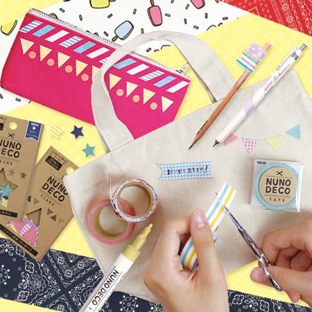 さらに、幅広のシート、切らずにそのまま使えるフレークやキラキラペン、すぐにデコが楽しめるバッグ等が増えて「NUNO DECO SERIES」になりました!