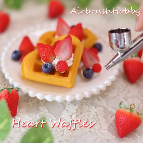 ふわふわ真っ白なハート形のワッフルにエアブラシで焼き色をつけましょう
