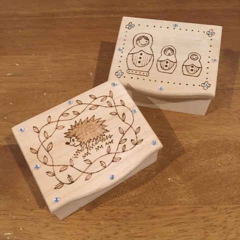 図案はスタンプ等で転写をしてなぞって焼くだけなので、初心者の方でも簡単にお作りいただけます。
