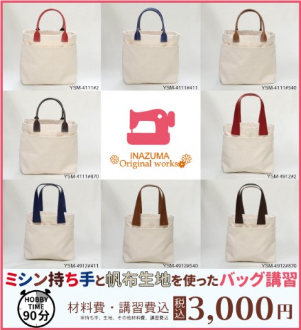 ミシン持ち手と帆布生地を使ったバッグ講習