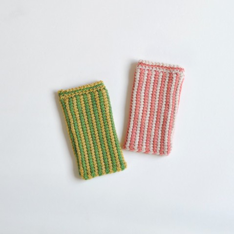 アフガン編みの基礎を学びながら、スマホケースを編んでみましょう。