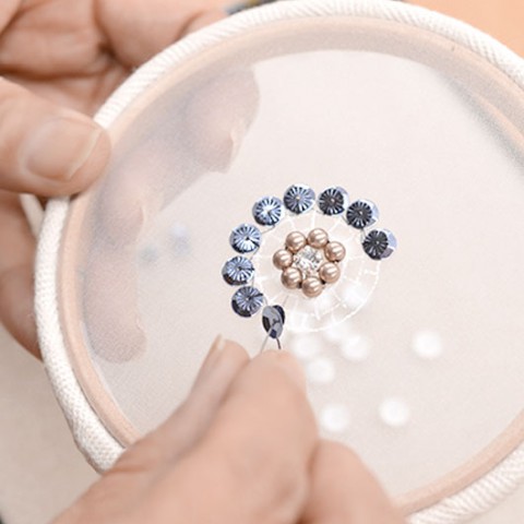 本場パリで選ばれるMIYUKIシードビーズ、フランス製スパンコールを使って、ゆめかわ色のフラワーモチーフを「オートクチュールビーズ刺繍」のテクニックで作ります。
