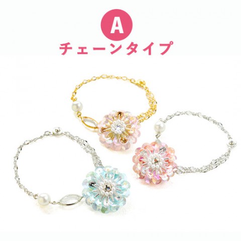 ブレスレットタイプA(チェーン)・B(ストレッチリボン)が選べます。