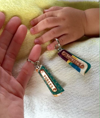 お子様にも大人気の実演販売です♪1000種類以上の中からお好みの革を選んでいただき、その場でお客様のお名前やイニシャルを刻印した革製キーホルダー、コインケース、移動ポケットなどを1個2分でお作りいたします。