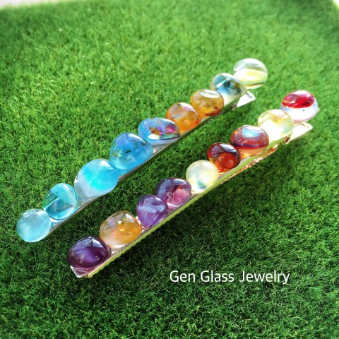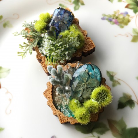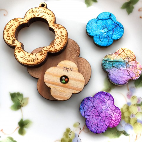 四つ葉のクローバーの虹色モザイクのパーツを作り、本物の四葉のクローバーの種を封入します。