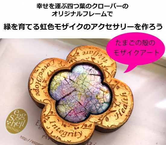 【当日先着順受付あり】幸せを運ぶ四つ葉のクローバーの種入りオリジナルフレームで 緑を育てる虹色モザイクのアクセサリーをつくろう (たまごの殻のモザイクアート体験)
