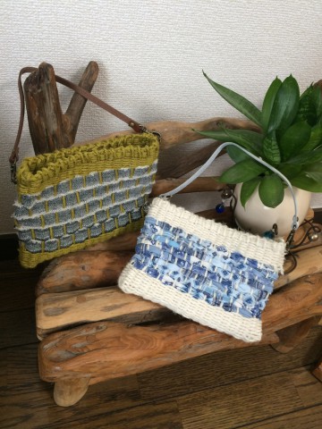 麻ひもや古着の裂き布を使ってバッグを作ります。