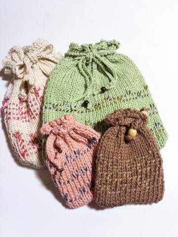 基本技法1を使った模様のポーチを作ります。ポス針はレンタルします。棒針編みで、表編みと裏編みのできる方なら大丈夫です。当方のスタッフがサポートいたします。