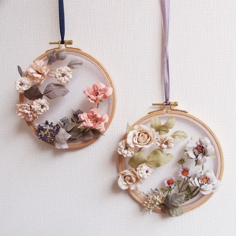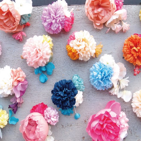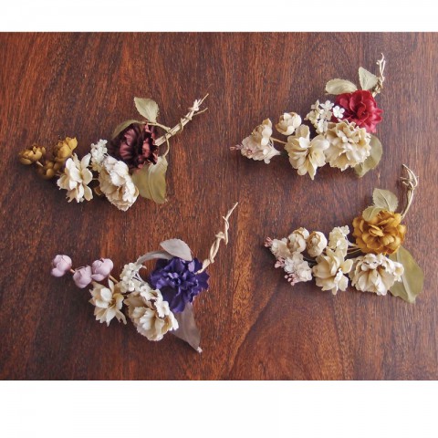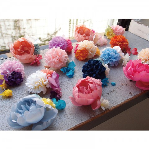 人気の花パーツシリーズ『polca』を使ったコサージュのワークショップです。